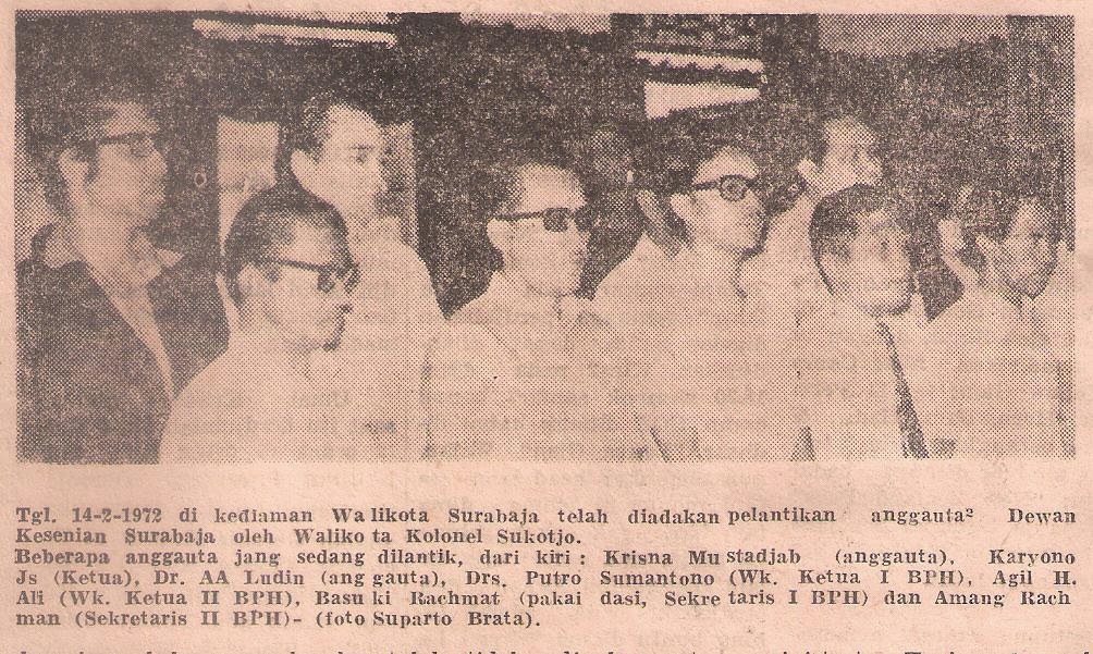1.Drs. Putro Sumantono (cendikiawan-pejabat Kotamadya Surabaya); 2. Gatut Kusuma (pelukis-cineas); 3. Amang Rachman (pelukis); 4. Agil H.Ali (wartawan); 5. Basuki Rachmat (sastrawan-wartawan); 6. Farid Dimyati (dramawan-wartawan); 7. Wiwiek Hidayat (pelukis-wartawan); 8. Krishna Mustadjab (pelukis); 9. Karyono Js (pelukis); 10. Sunarto Timur (dramawan); 11. Teguh (pemusik-show business); 12. Hasjim Amir MA (dramawan); 13. M.Daryono (pelukis).